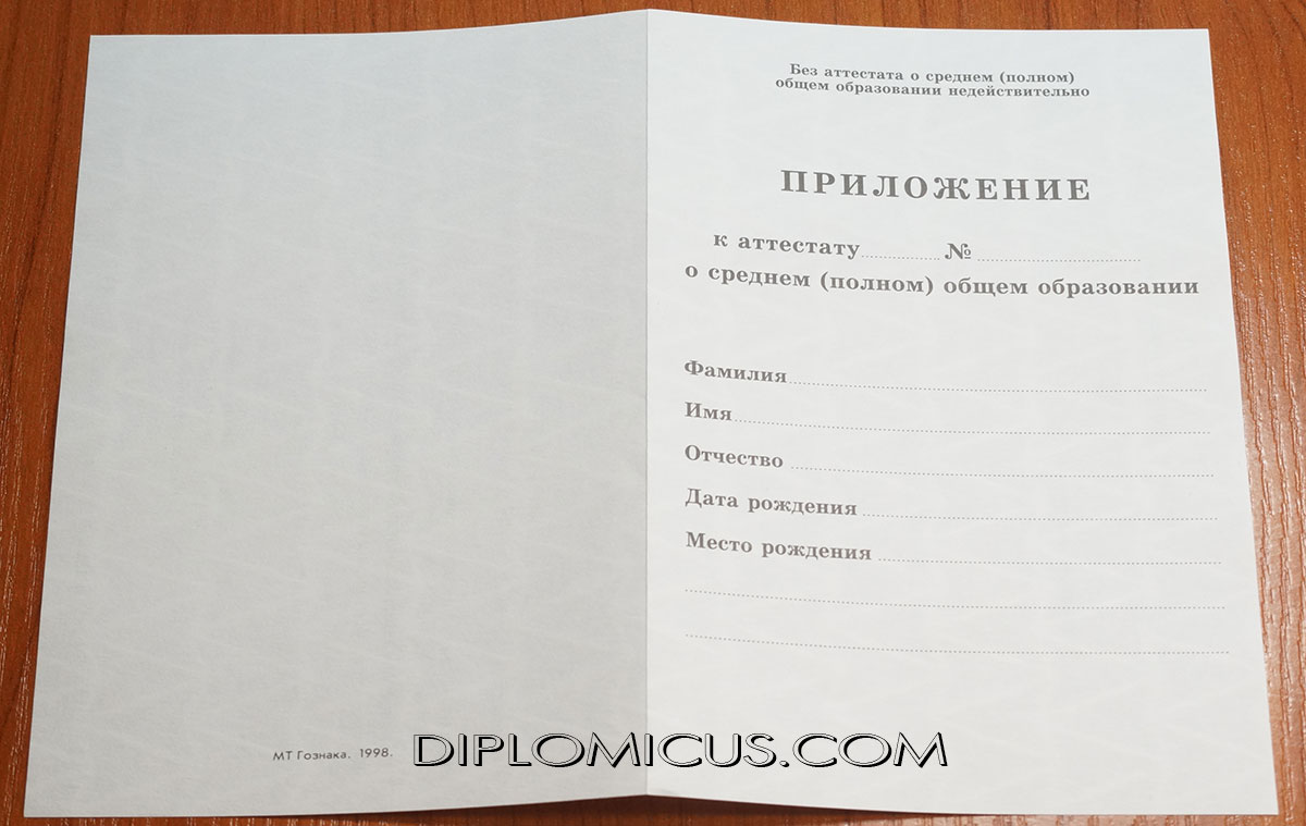 Аттестат о среднем образовании за 11 класс